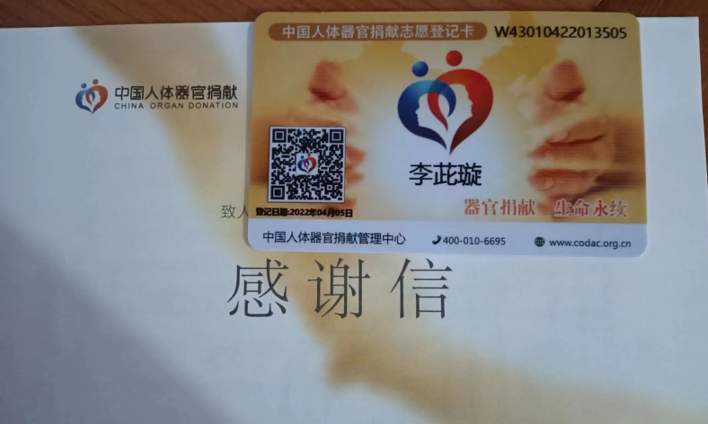 李茈璇的人體器官捐獻(xiàn)志愿登記卡