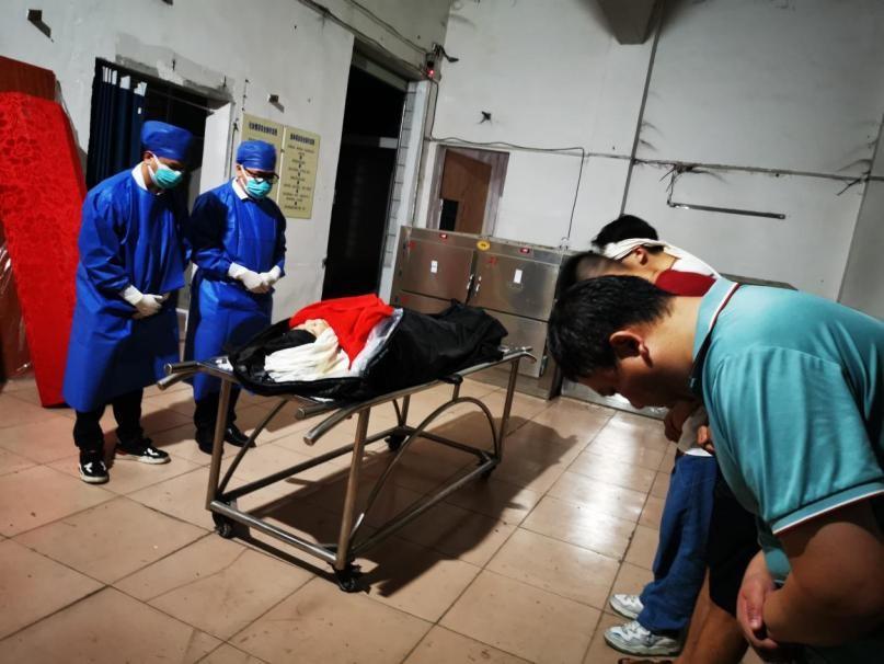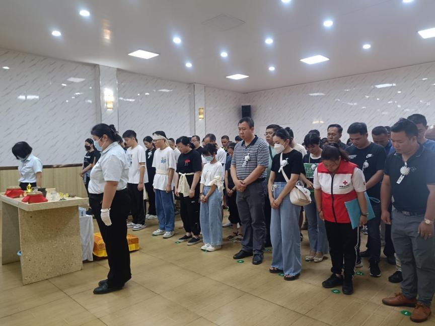 ▲紅十字會和醫(yī)護(hù)人員向何繼東遺體鞠躬