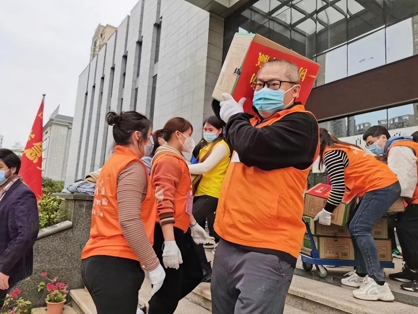▲何繼東在搬運(yùn)抗疫物資