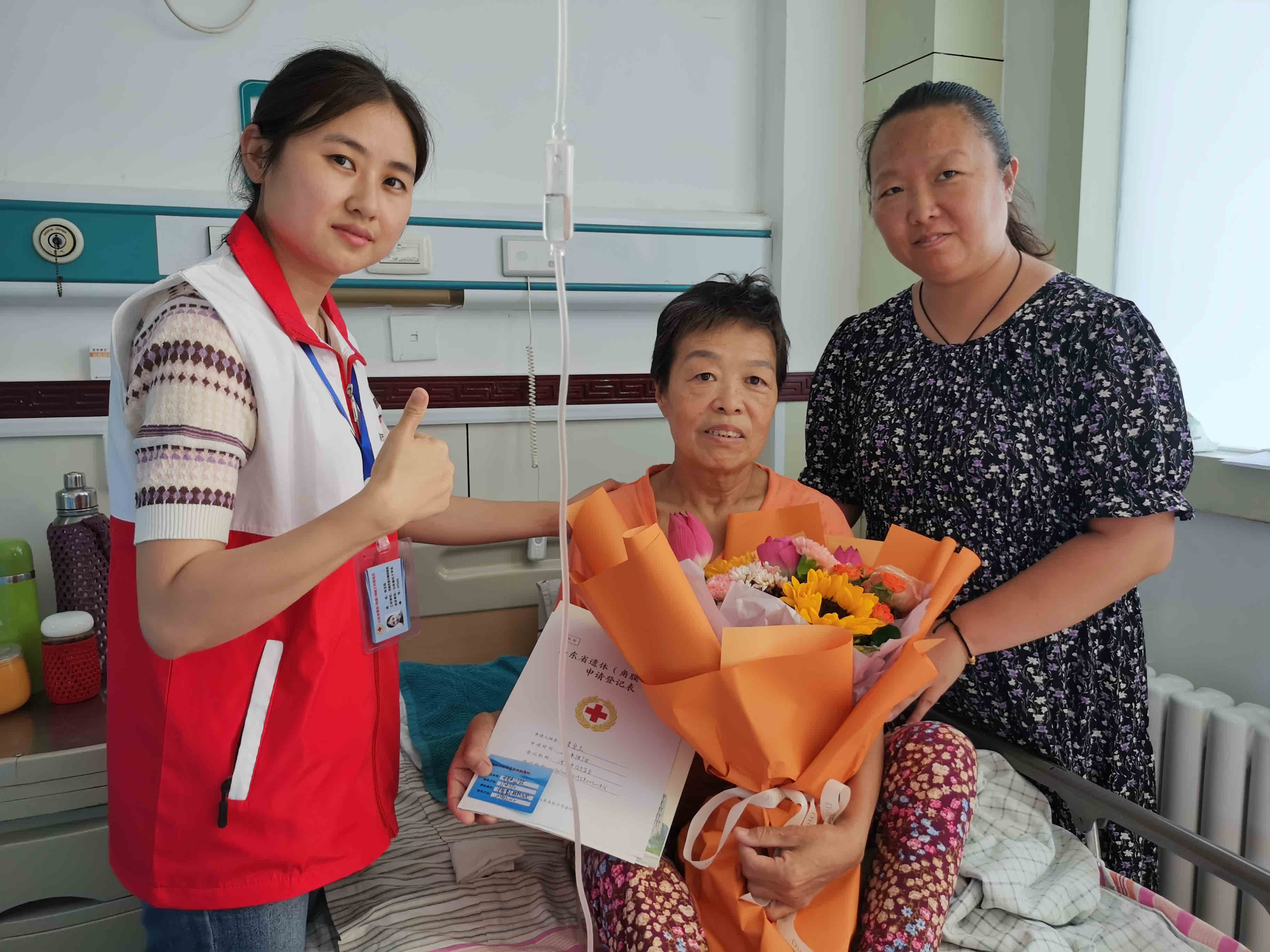 7月7日上午,山東省遺體(角膜)捐獻(xiàn)工作聯(lián)絡(luò)員、濟(jì)南市紅十字志愿者張玉廷來到駐濟(jì)某醫(yī)院,為愛心市民李金玉老人辦理了角膜捐獻(xiàn)登記手續(xù)。
