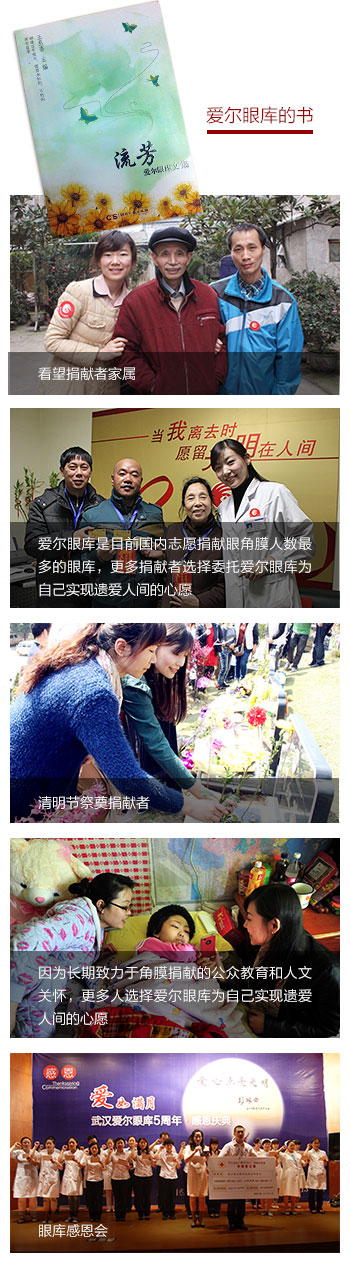 2012年6月,愛爾眼庫(kù)出版中國(guó)第一部眼角膜捐獻(xiàn)者紀(jì)實(shí)作品《流芳》,以感恩捐獻(xiàn)者,感恩各界對(duì)于眼庫(kù)事業(yè)的支持和幫助。書籍贈(zèng)閱,請(qǐng)聯(lián)系就近愛爾眼科醫(yī)院。
